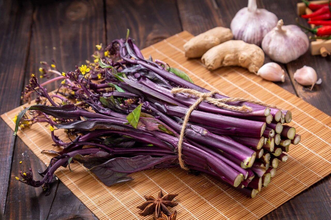 红菜薹的养分丰富,所含丰富的维生素C、叶酸、胡萝卜素等养分素能增强免疫力,膳食纤维能化解冬日肉类食品的肥腻。此外,红菜薹还富含花青素以及磷、钾、锌、硒等矿物资。烹调红菜薹莫得阑珊的圭臬,大火快炒加点蒜蓉便是最好的面貌。